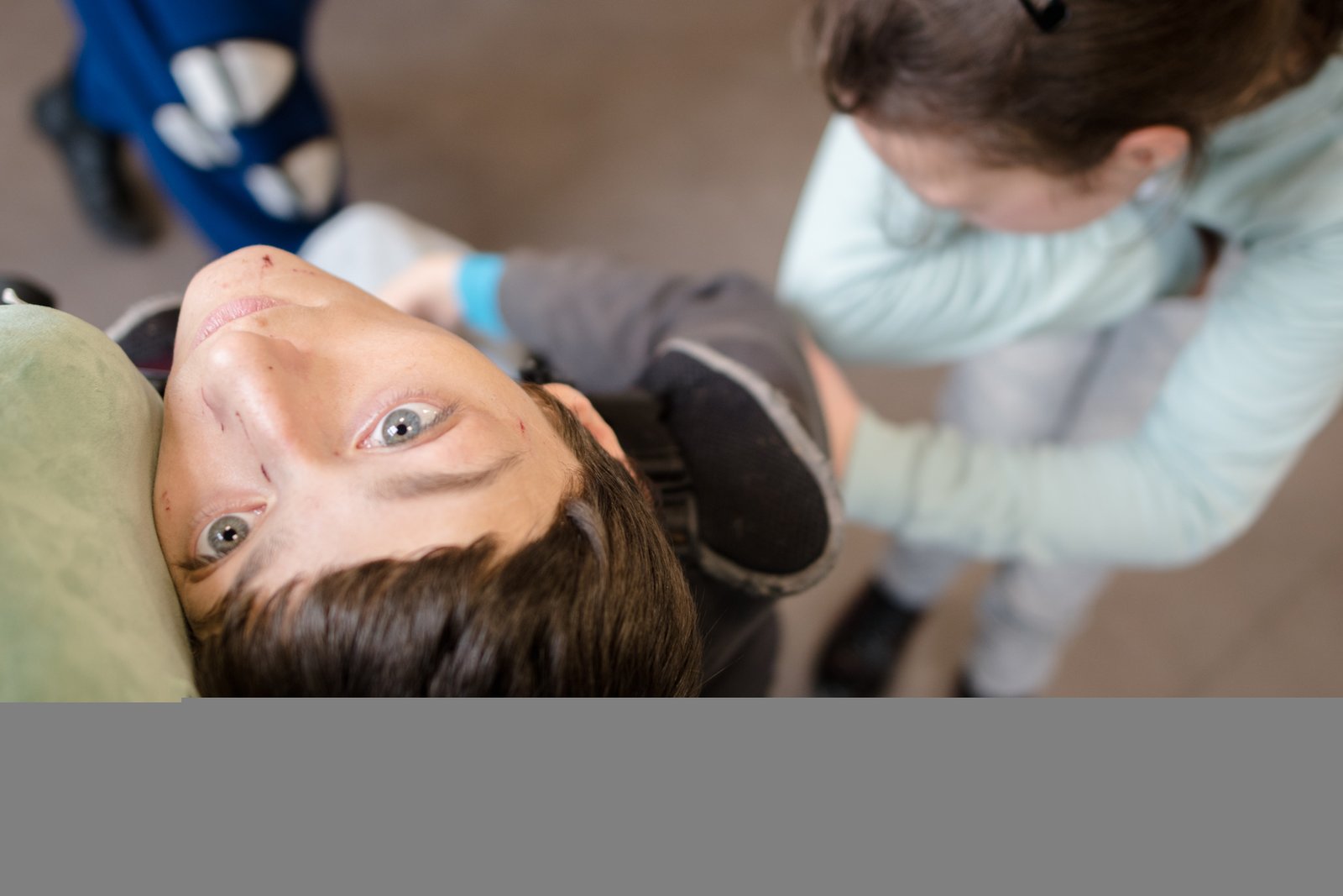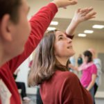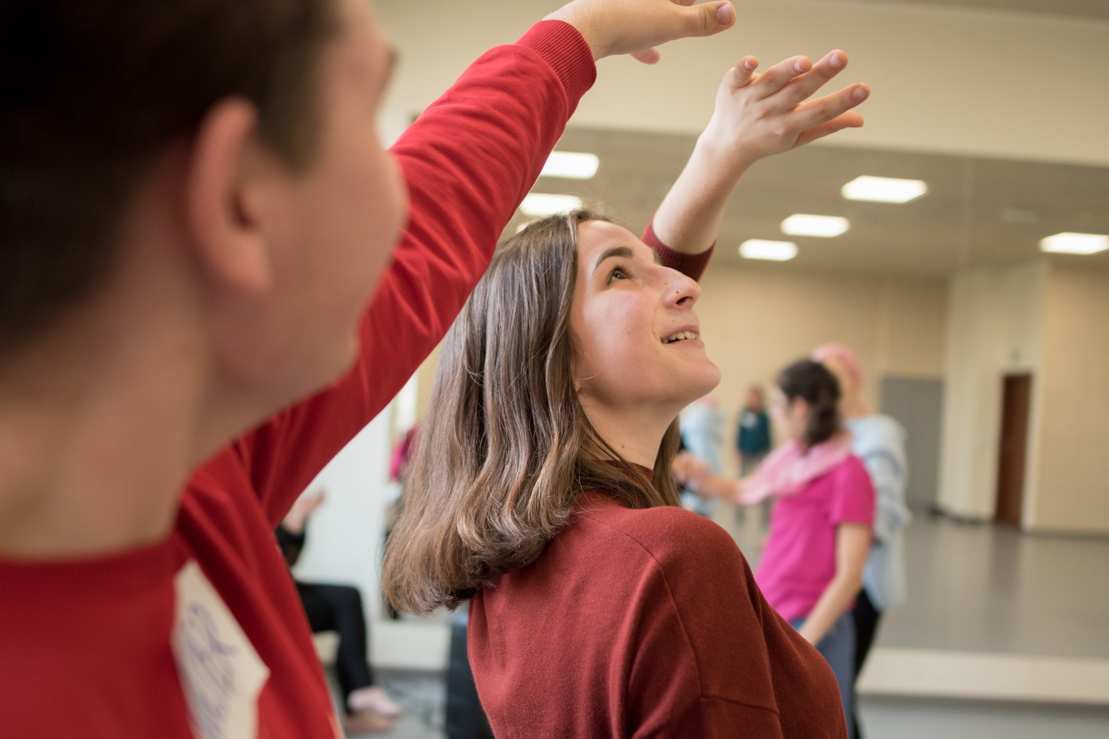 Uczniowie najpierw biorą udział w warsztatach prowadzonych przez artystów – tancerzy Martę